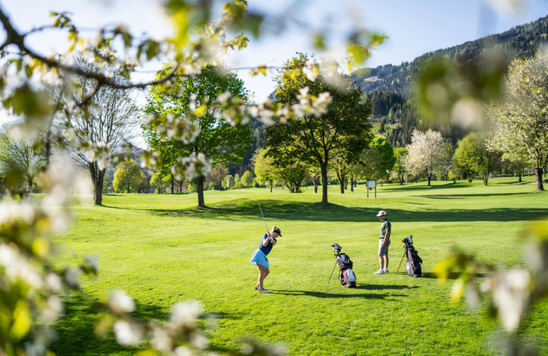 Jetzt aber endlich zum Golfsport. Die Kulisse zwischen Seen und Bergen könnte nicht schöner sein, der Golfplatz befindet sich am sonnigen Hochplateau zwischen Seeboden und Millstatt und gewährt einen wunderschönen Blick auf den See und die umliegende Bergwelt, bei klarer Sicht sogar bis zum Großglockner. Der 18-Loch-Platz bietet abwechslungsreiche Bahnen, die durchaus anspruchsvoll sind aber dennoch von Golferinnen und Golfern mit höheren Handicaps bezwungen werden können. Die Golfschule Paul Thompson bietet Pro-Stunden, aber auch Einsteigerkurse mit Platzreifeprüfung an.