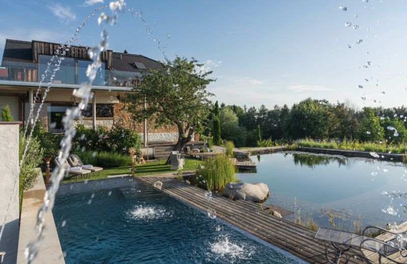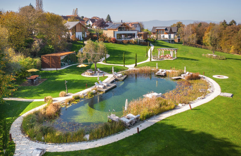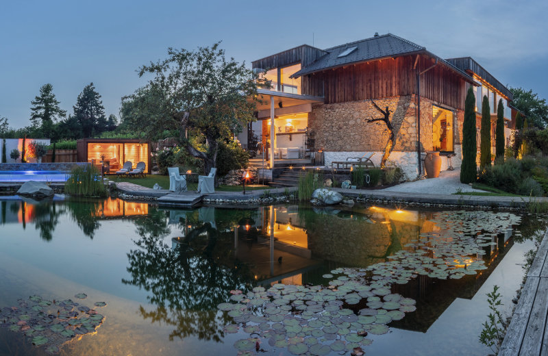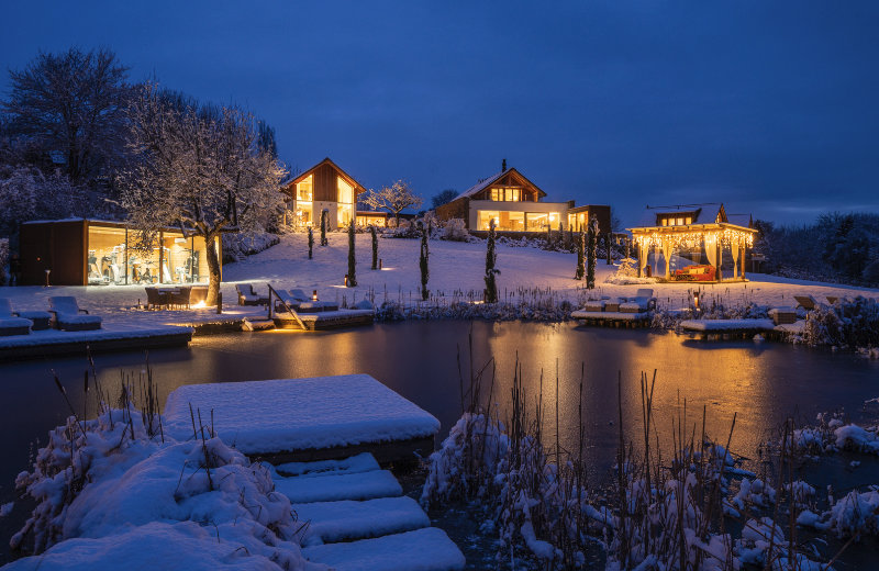 Das Resort bietet auch neben den Chalets jeglichen Luxus, wie hervorragende Kulinarik, einen gut sortierten Weinkeller, Beauty-Treatments, Private Yoga mit Barbara im Chalet oder beim idyllischen Naturschwimmteich und sogar eine Hubschrauberlandemöglichkeit.