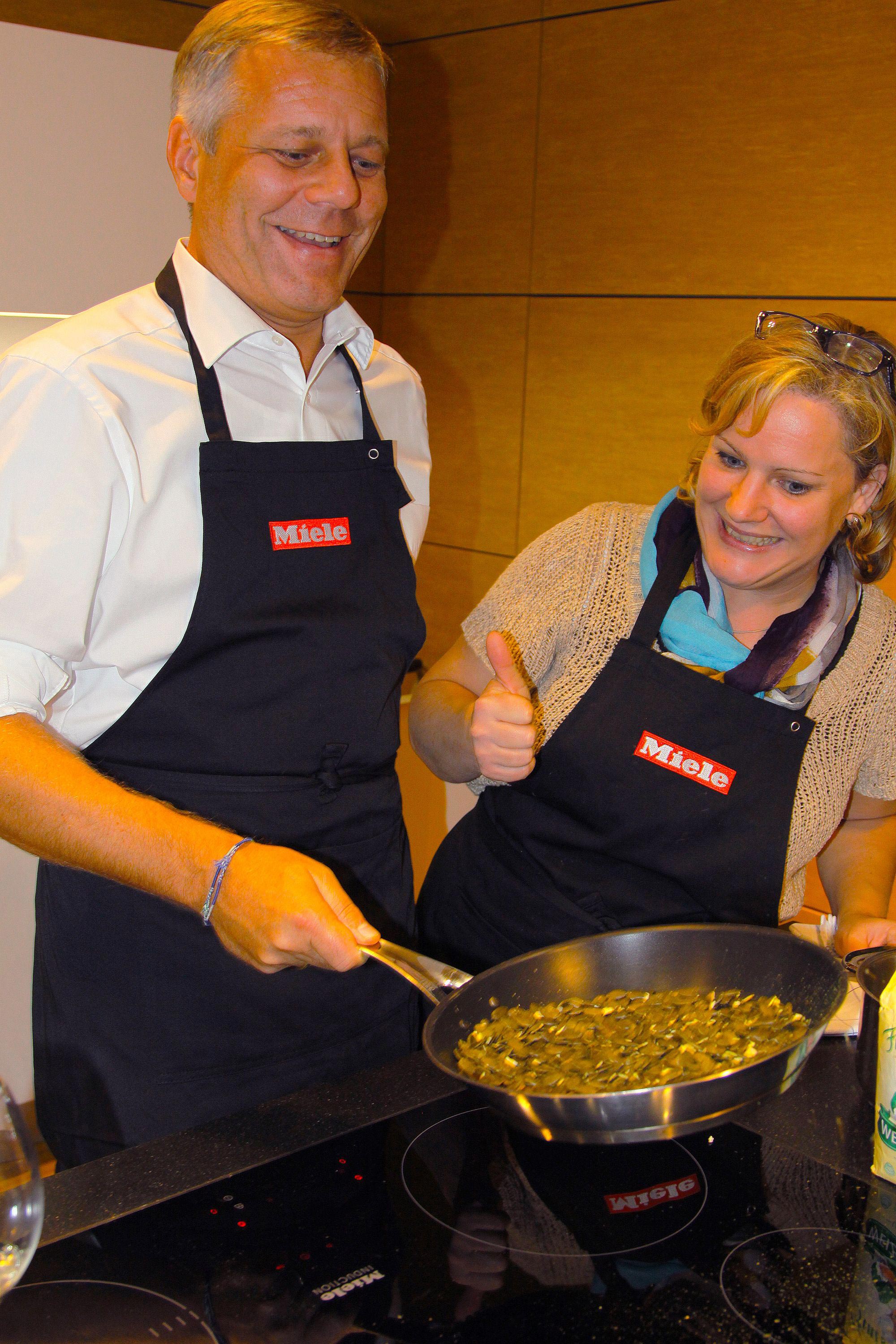 Nach einer Einführung durch Petra Ummenberger, PR-Verantwortliche bei Miele und unter der professionellen Anleitung von Marianne Scheruga kochten unter anderem Gabriele Zelloth, Magaboard Soravia, Helmut Almhofer, 2-morrow, Erich Schönberg, Styria Multi Media Corporate, Alexander Schmidecker, Raiffeisen Leasing, Christoph Hayden, Raiffeisen-Leasing, Konrad Maric, Jürgen und Celine Polterauer, Dialogschmiede, Hans Bauernfeind, decoo, sowie Gabriele Stanek, Echo Medienhaus.