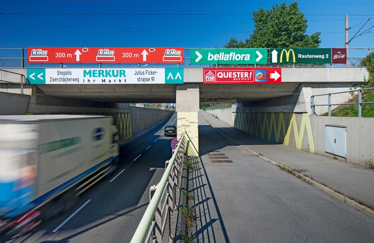 Weitere Werbemöglichkeiten - Digital: ZiiCONad, Hinweiswerbungen: Brückentransparente, ÖBB Big Board