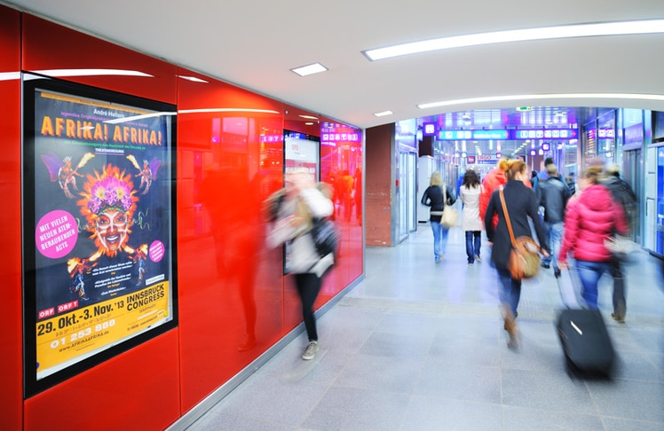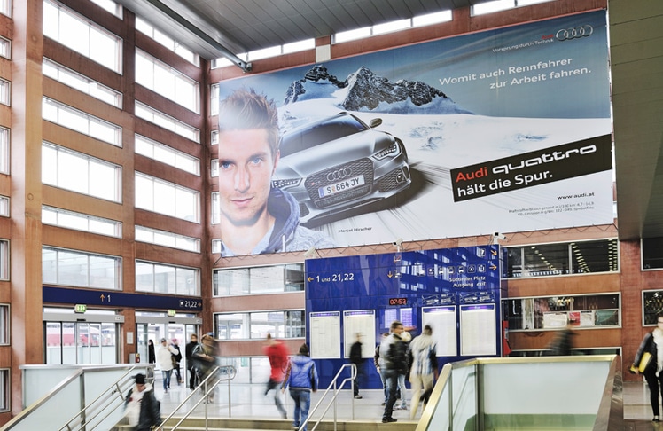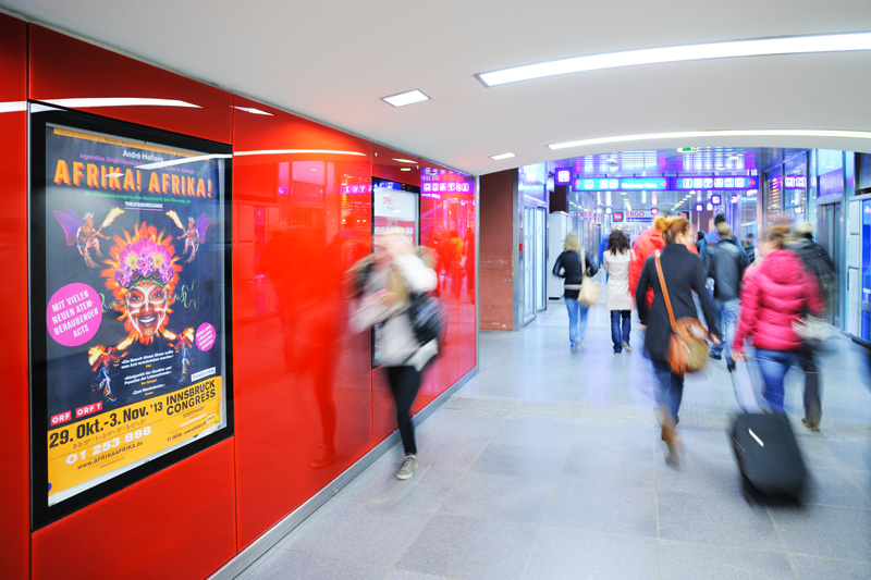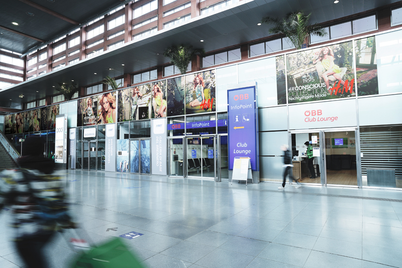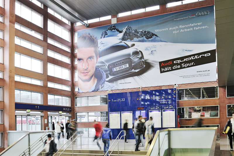 Bahnhofswerbung: Stationbranding, Kleinplakatserie, Großbildwerbung, ÖBB Leuchtwerbung im Citylight Format
