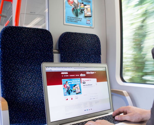 Verkehrsmittelwerbung: Lokbranding, Zugbranding, A3 Plakate in Zug und Bus, Busbranding