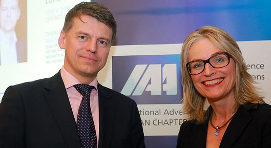 Der erste IAA Business Communication Lunch des Jahres 2014 brachte auf Einladung von IAA-Präsidentin Martina Hörmer, Veit V. Dengler, seit 1. Oktober 2013 CEO der NZZ-Mediengruppe als Ehrengast ins Vestibül. Der Österreicher sprach über "Wie Medienunternehmen sich neu erfinden können". "Am Ende der 1990er Jahre gab es die letzten goldenen Zeiten für Print, doch nach dem Platzen der Dotcom-Blase, der Entwicklung von Smartphones und der Wirtschaftskrise wurde die Veränderung schlagend: Die Werbeeinnahmen gingen ins Internet und blieben dort. Das Nachrichtenmonopol von Print war obsolet", analysierte Dengler. "Wir müssen also die Print-Zeitung neu aufstellen ebenso wie neue Produkte entwickeln. Die Neue Zürcher Zeitung könnte nun den Boulevard zur journalistischen Norm erheben oder den Zeitungsbetrieb durch andere Geschäftsmodelle entlasten. Als Qualitätsmedium mit hoher Reputation wählen wir aber den dritten Weg: Wir bauen das publizistische Angebot aus und investieren in neue Technologien", skizzierte Dengler seine Strategie.