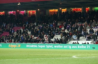 LED-Bande im Stadion zeigte während Spiel live Sprüche von Fußballfans.