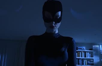 Spot mit attraktiver Einbrecherin bewirbt indoor Kamera mit Nachtsicht.