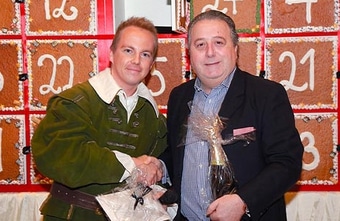 Erstes Kästchen des drei Quadratmeter großen Weihnachtskalenders geöffnet.