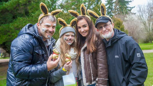 Bereits zum vierten Mal bat Lindt & Sprüngli zum großen Goldhasen-Fest und zur Goldhasen-Suche nach Schönbrunn. Tausende Goldhasen-Fans tummelten sich im Botanischen Garten und erfreuten sich zahlreicher Osteraktivitäten. Besonders beliebt war die – heuer neue – Lindt Goldhasen Werkstatt, in der Kinder in die Rolle des Lindt Maître Chocolatiers schlüpften und dort ihren ganz persönlichen Goldhasen für zu Hause verzierten. Ebenso neu war das Kiddy Contest Karaoke Zelt, in dem die Kleinen mutig ihr Gesangs-Talent unter Beweis stellten, und die eigens angefertigte Goldhasen Hüpfburg, in der sie fröhlich um die Wette hoppelten. Auf all jene, die das Glück hatten, eines der heiß begehrten Familien-Tickets für die Goldhasen-Suche zu gewinnen, warteten mehr als 10.000 versteckte Lindt Osterspezialitäten.