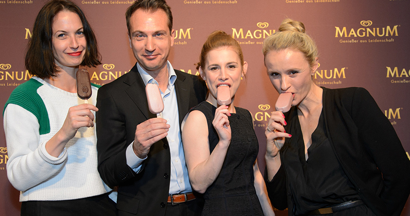 Zur Einführung der neuen Eisvarianten Magnum Pink & Magnum Black gibt es dieses Jahr auch visuelle ‚Gustostückerln’: In Paris inszenierte Starfotografin Ellen von Unwerth die Schauspielerin Josefine Preuß in Momenten, die für Pink und Black stehen. Die Ergebnisse der Zusammenarbeit gibt es im April und Mai in Ausstellungen in Berlin, Wien und Hamburg zu sehen. Magnum Pink steht für die unbeschwerten und ausgelassenen Facetten des Lebens. Im Kontrast dazu gibt es Genussmomente, in denen sich das Leben geheimnisvoll, intensiv und in eleganter Schönheit zeigt. Das sind die Momente für Magnum Black. „Magnum steht seit mehr als 25 Jahren für Genussmomente“, erläuterte Susanne Biljes, Senior Brand Manager Magnum. „Die Idee hinter Magnum Pink & Black ist, dass man das Leben auch wirklich in allen Facetten genießen sollte. Wir sollten uns immer die Freiheit nehmen, jeden Moment so zu genießen, wie wir uns gerade fühlen – sei es pink oder black.“