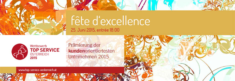 Seien Sie am 25. Juni 2015 bei der Fête d´excellence dabei und erleben Sie die Prämierung der kundenorientiertesten Unternehmen Österreichs.
