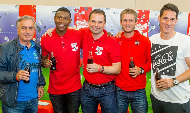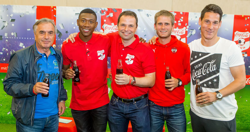 Coca-Cola CUP Botschafter David Alaba zeigte sich nach seiner Verletzung wieder voll fit und war vom Können und Auftreten der jungen Kicker begeistert: „Wenn man hier beim Coca-Cola CUP sieht, wie die Kinder strahlen und Spaß am Fußball spielen haben, dann sehe ich mich, wie ich klein war und das macht mich auch wirklich happy.“ Vor dem Finale besuchte der ÖFB-Teamspieler die beiden Mannschaften des SK Rapid Wien und des FC Admira Wacker Mödling – ein einzigartiger Moment für alle Spieler.
