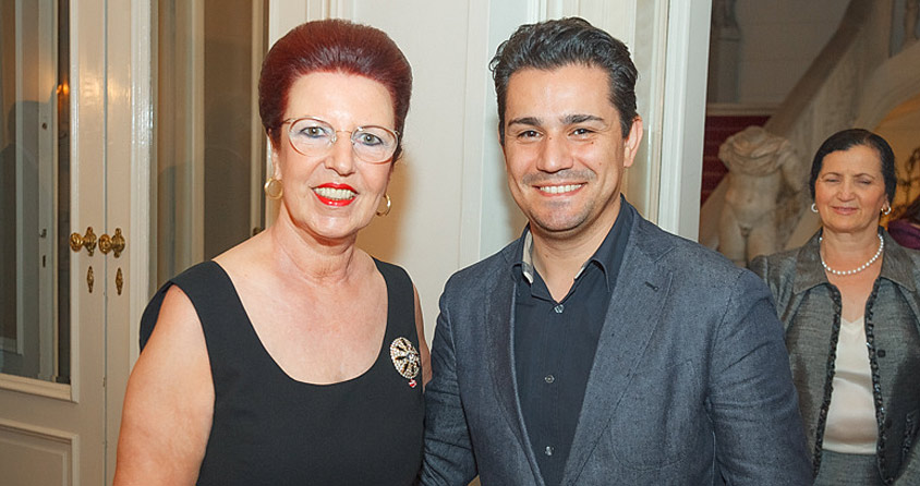 Der Hausherr, der Italienische Botschafter Giorgio Marrapodi und seine Gattin, sowie zahlreiche Gäste, darunter die Botschafterin von El Salvador, Carmen Maria Gallardo Hernandez, der Botschafter von Ungarn, János Perényi, Botschafter Christian Berlakovits und Botschafter Konstantin Prevedourakis, sowie die Gesangsstars aus der Wiener Staatsoper Ekaterina Siurina, Giovanni Meoni, Saimir Pirgu und Maestro Evelino Pidó bewunderten die kulturellen Einlagen von Staatsopern-Kammersängerin Ildikó Raimondi und Clemens Unterreiner, am Klavier von Ilse Schumann begleitet, sowie jene der Tänzer des Wiener Staatsballetts, Rebecca Horner und Felipe Vieira.