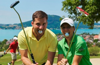 Jungunternehmer und Studenten golften, feierten, tanzten und lachten.