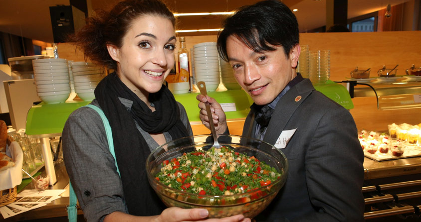 Ein Abend des gelebten Miteinanders und des aufeinander Zugehens war „Welcome Cooking! Ein Dinner für die Menschlichkeit“ von Siegfried Kröpfl & Friends im MGC auf der Leopold Böhm Straße in Wien. Bei dem von equalizent, dem Kompetenzzentrum für Diversity Management, organisierten Kochen zauberten Flüchtlinge gemeinsam mit Prominenten und der Gastgewerbeschule Judenplatz Köstlichkeiten aus Syrien und traditionelle Wiener Spezialitäten für ca. 120 Personen auf die Teller.