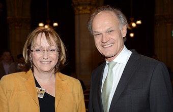Hötschl und Hamilton beim Sport & Business Circle der Österreichischen Sporthilfe.