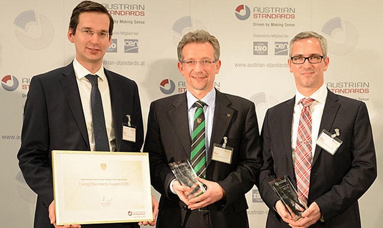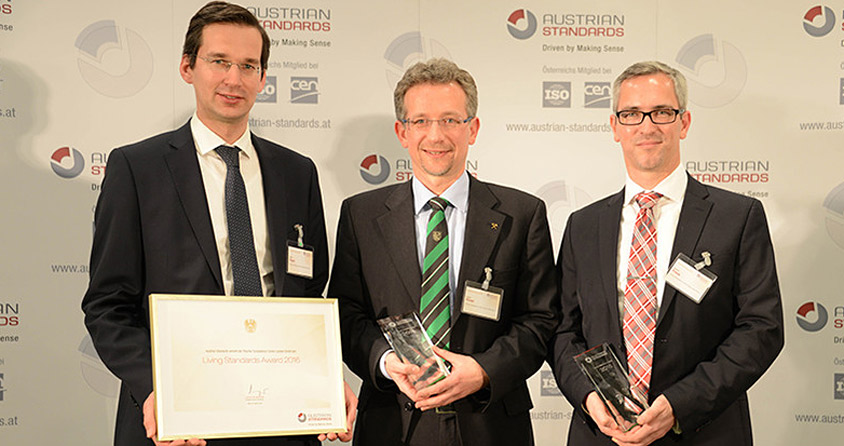 Von einem Testverfahren für Gas- und Wasserrohre über Regeln zur lückenlosen Gebäudedokumentation bis hin zu neuen Prüfmethoden für Fahrtreppen und Fahrsteige sind mehrere österreichische Standards dabei, sich international durchzusetzen. Im Rahmen des Neujahrsempfangs von Austrian Standards wurden am 20. Jänner 2016 Firmen und Organisationen mit den Living Standards Awards ausgezeichnet, die jene Normen, die sie brauchen, vorbildlich nutzen und strategische Überlegungen bestmöglich in die Entwicklung von Standards einfließen lassen.