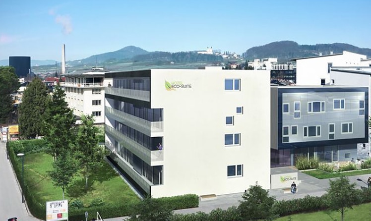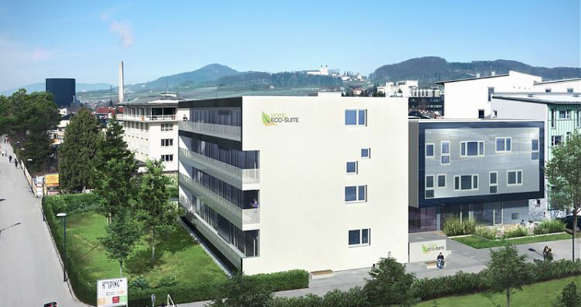 Das Eco Suite Hotel in Salzburg öffnet Mitte März 2016 erstmals seine Pforten. Reüssieren soll es vor allem mit „Plusenergiequalität“. Dank eines erstmals eingesetzten Wärmerückgewinnungsystems wird nicht nur der thermische Energiebedarf für Heizung und Warmwasser zur Gänze abgedeckt, sondern auch noch überschüssige Energie in das bereits bestehende Kolpinghaus rückgespeist. Damit erzeugt das Gebäude mehr Energie als es verbraucht. Wir verringern Erdgaseinsatz und damit verbundene Treibhausgasemissionen und leisten so einen aktiven Beitrag zum Klimaschutz“, erläutert Geschäftsführer Karl Zallinger. Das 3-Sterne-Hotel verfügt über 44-Zimmer und befindet sich direkt neben dem Salzburger Kolpinghaus. Angesprochen werden sollen vor allem Firmen- und Seminargäste, Messebesucher und Städtetouristen.