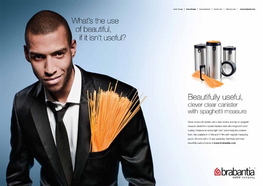Frauen lieben schöne Männer nur dann, wenn diese auch nützlich sind. Ebenso halten sie es mit der Auswahl ihrer Küchenutensilien. Mit solchen Klischees spielt die Kampagne "Beautifully Useful" von Brabantia, einem niederländischen Hersteller von Haushaltsprodukten.