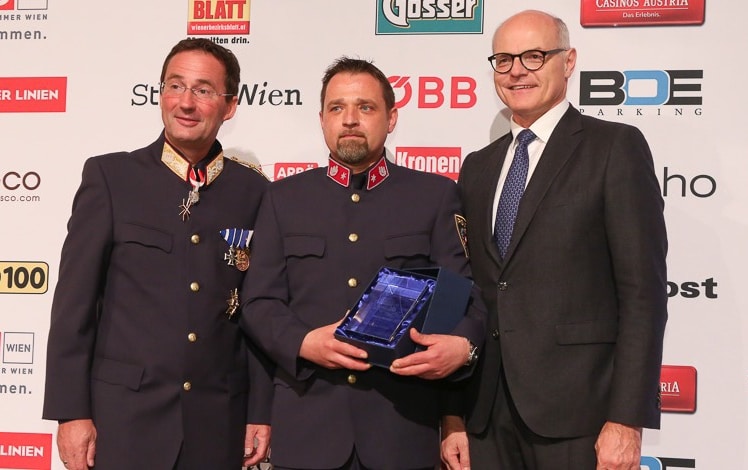 Für „Besondere Verdienste auf dem Gebiet der Prävention, der Menschenrechte und des Opferschutzes" wurde Chefinspektorin Maria Wutzlhofer von Karl Mahrer und Wiener Linien-Geschäftsführer Eduard Winter geehrt. Der große Publikumsaward, der gemeinsam mit der Krone ermittelt wurde, ging an Bezirksinspektor Mario Bennier: Die Auszeichnung „Polizist des Jahres" überreichten Krone-Redakteur Alexander Schönherr und Polizeipräsident Pürstl . TeamBank Österreich-Leiter Andreas Sedlmaier und Harry Kopietz zeichneten abschließend den sichtlich gerührten Chefinspektor Johann Wöhrer für sein polizeiliches Lebenswerk aus.