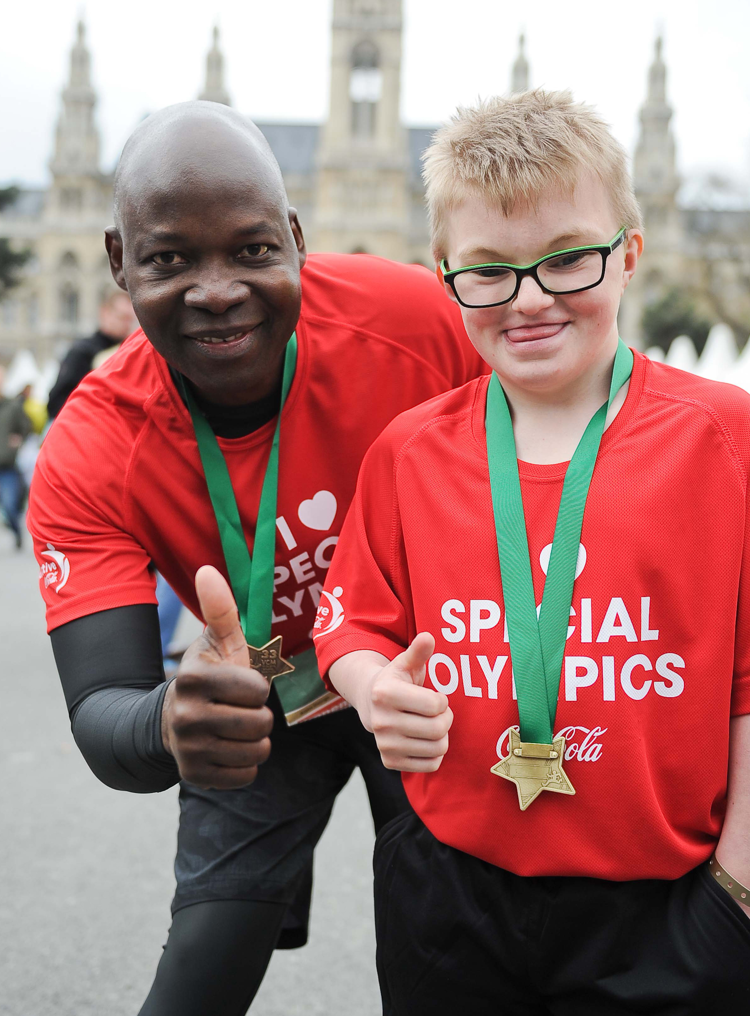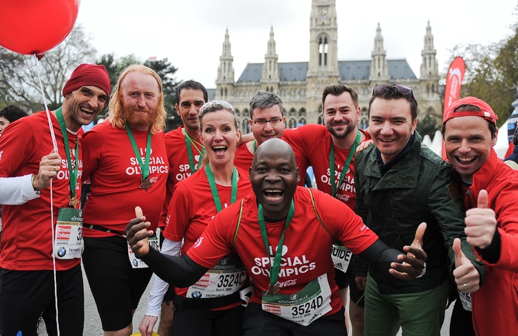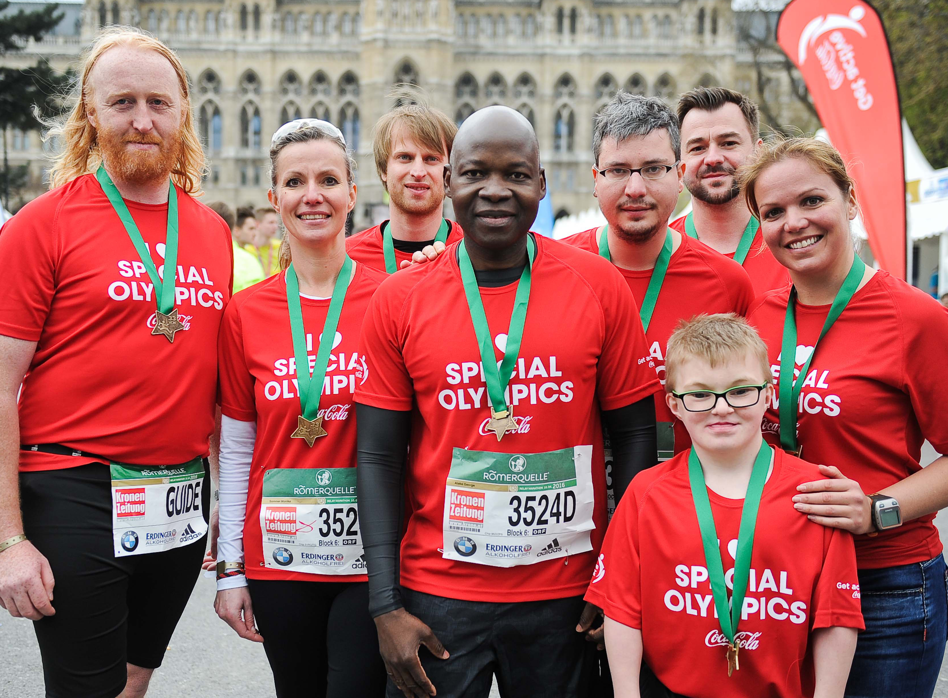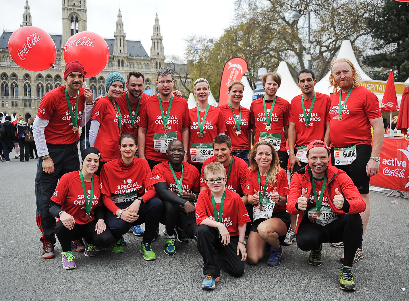 Auch die Special Olympics, die weltweit größte Sportveranstaltung für intellektuell beeinträchtigte Menschen, wurde den Zuschauern beim Vienna City Marathon laufend ins Gedächtnis gerufen. Wie sehr hier Menschen mit und ohne intellektuelle Beeinträchtigung gemeinsam als Team erfolgreich sein können, zeigten vier Unified Special Olympics-Staffeln beim Vienna City Marathon. Je ein Coca-Cola Mitarbeiter, ein Hobby-Athlet, ein Promi und natürlich ein Special Olympics-Sportler waren am Start und rannten für die Mission der Special Olympics.