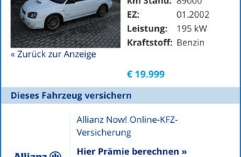 willhaben wirbt mit einfachen Textlinks für Allianz und zeigt, wie effizient unkomplizierte Werbung zu Qualitäts-Leads führen kann.