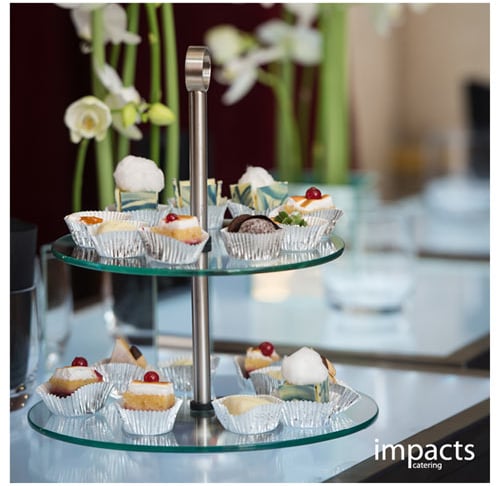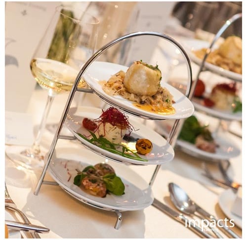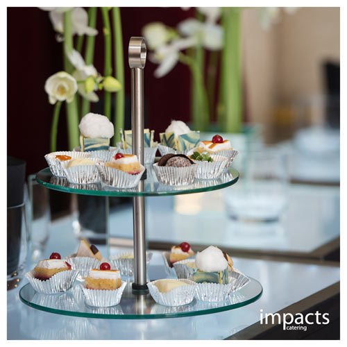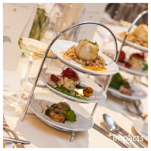 Hoch hinaus statt „Die Qual der Wahl“. Genießen Sie mit der exklusiven Vorspeisen-Etagere von impacts Catering die ganze Vielfalt des Vorspeisenangebotes, Etage für Etage