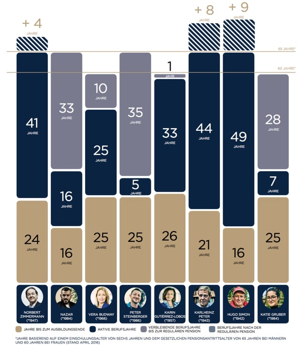 Norbert Zimmermann, Industrieller und Hauptaktionär der Berndorf AG diskutiert mit dem Rapper Nazar, der zurzeit – über die Grenzen Österreichs hinaus – als Stimme einer Generation gehandelt wird. Beide warten nicht auf eine staatliche Pension und denken nicht an Ruhestand, sondern kümmern sich viel lieber um ihre Geschäfte." Früher war die Situation einfach anders, es ging immer vorwärts. Die Pension war für mich nie ein Thema – und ist es bis heute nicht. Und obwohl ich mittlerweile 69 Jahre alt bin, hoffe ich, dass Sie mich nicht als Pensionist sehen. Ich zahle noch Steuern und Beiträge in Pensionskassen, von denen ich nie etwas sehen werde. Und das sollte man der Jugend auch sagen: Verzagt nicht! Bis ihr 65 oder 70 seid, ist es noch ein weiter Weg", so Zimmermann. Er selbst habe nie dem System vertraut, sondern immer auf seine eigene Kraft.