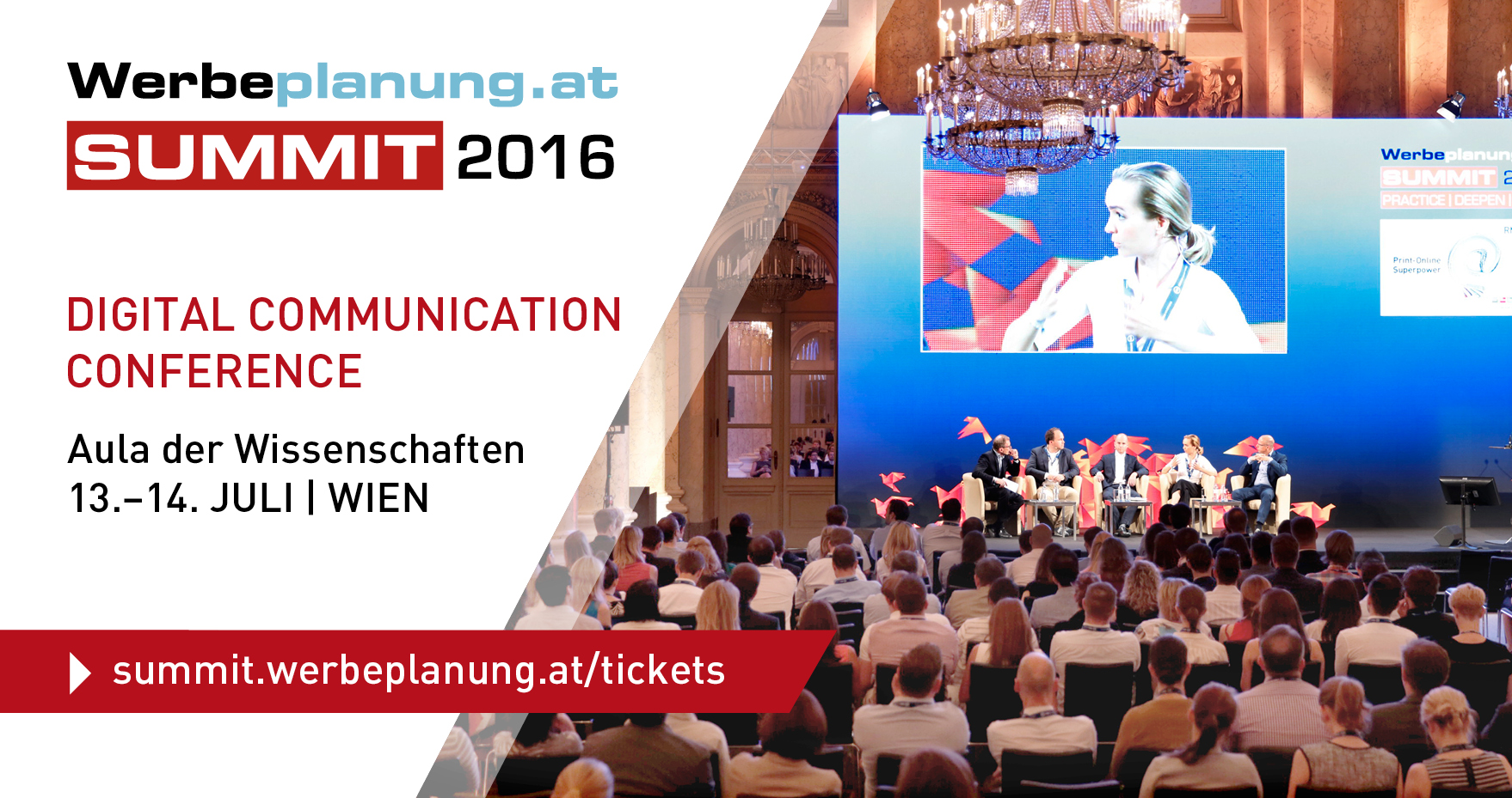 Laufende Updates zur Veranstaltung finden Sie auf summit.werbeplanung.at und auf Twitter oder #wpsummit16