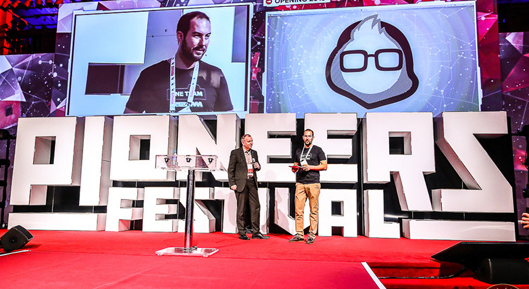 Acht Meter hoher interaktiver Turm mit Projektionsfläche von 21 Quadratmetern.