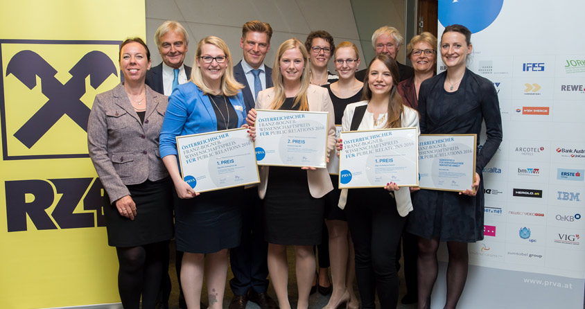 Der PRVA (Public Relations Verband Austria) hat den Franz-Bogner-Wissenschaftspreis für PR 2016 vergeben. Der Wissenschaftliche Senat des Verbandes hat dafür ein Preisgeld von 8.700 Euro ausgelobt. Von 27 wissenschaftliche Arbeiten wurden acht Arbeiten von der Jury ausgezeichnet. Die Preisträger sind in der „Sky Conference“ der Raiffeisen Zentralbank (RZB) im Rahmen einer feierlichen Preisverleihung geehrt worden. RZB-Vorstandsmitglied Johannes Schuster verwies bei seiner Begrüßung auf die Bedeutung der Synergien zwischen Wissenschaft und Wirtschaft.