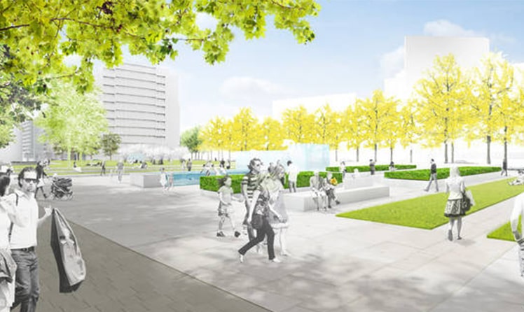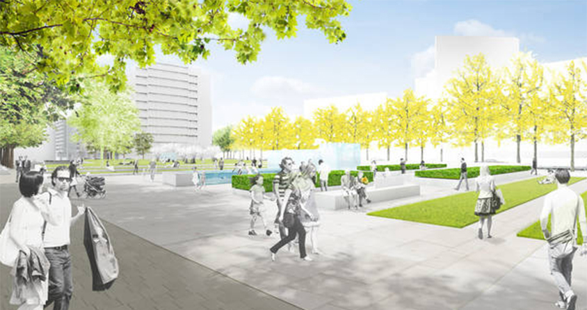 Insgesamt werden mehr als 3.300 Quadratmeter an nutzbaren Grünflächen angeboten, sollen insgesamt 160 Bäume neu gepflanzt werden und werden im Bereich der Sitzmauern wie auch über ergänzende Sitzmöbel im Bereich der Rasen- und Platzflächen attraktive Aufenthaltsbereiche in adäquater Menge angeboten, die dem Anspruch "Platz für alle" zu bieten gerecht werden.
