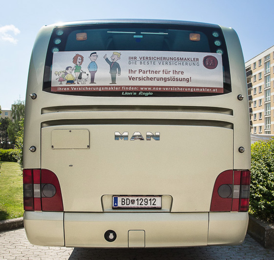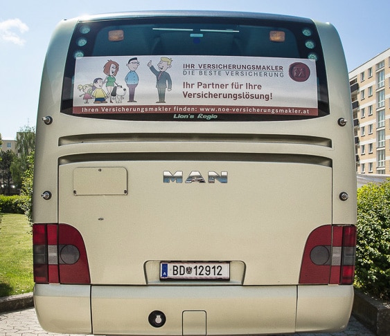 Busse als Imageträger für Werbebotschaften der NÖ Versicherungsmakler.