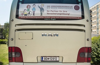 Busse als Imageträger für Werbebotschaften der NÖ Versicherungsmakler.