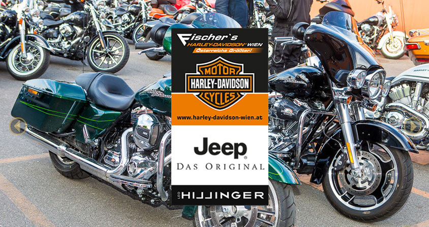 .) 18:00 Uhr: Ankunft @ Fischer's Harley-Davidson mit anschließender Besichtigung der neuen Räumlichkeiten in Kombination mit Vorträgen von KommR Ferdinand O. Fischer „Schließen Sie Ihre Marketingabteilung – Ihr Kunde kann es besser“ und Vorstellung der Jeep® Modellpalette.