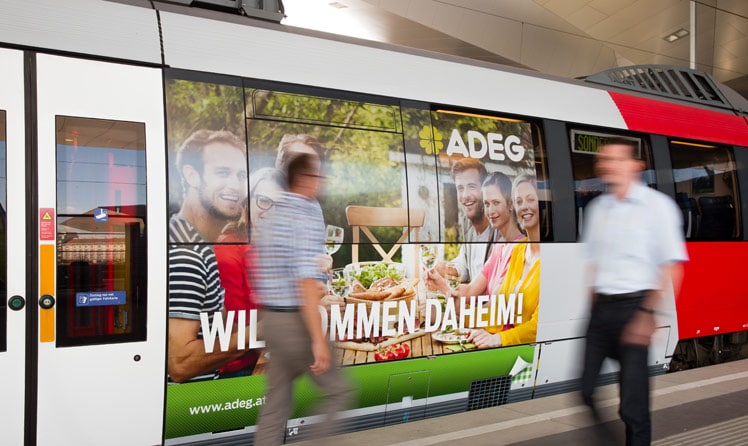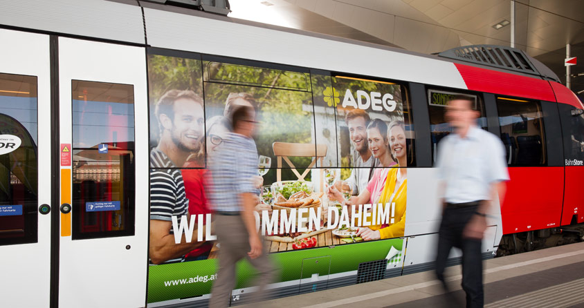 statt € 15.500,- jetzt nur € 12.400,-* 20 Beklebungen auf 10 Zügen 1 Monat bis zu 7,58 Millionen Kontaktchancen Inklusive Produktion, Montage und Demontage! MEHR