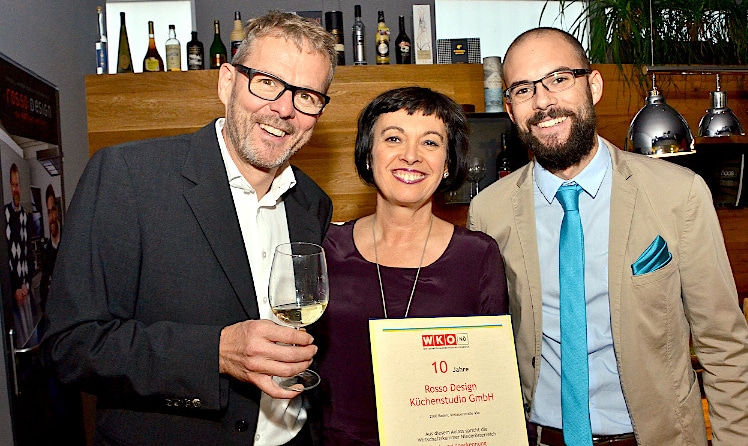 Anlässlich des 10-jährigen Jubiläums des Badener Küchenspezialisten rosso:design, wurde eine honorige Gästeschar zum „Open House Day“ begrüßt. Stilvoll, modern, international, so lautet das Motto des Badener Interieur-Profis. Seit 10 Jahren bieten die beiden Geschäftsführer Klaus und Patrick Eckenfellner Küchendesign auf höchstem Niveau an. Klaus Eckenfellner: „Als Familienbetrieb setzen mein Sohn und ich auf die Kombination Tischler-Meisterwerk und kreatives Design“. Ihr Know-How und ihre Dienstleistungen sind nicht nur am Standort in Baden, sondern weit über die Grenzen gefragt. Für das leibliche Wohl sorgte der in Baden bestens bekannte Heurige Bernhard Ceidl. Die Bezirkschefin von „Frau in der Wirtschaft“, Frau Sabine Wolfram, überbrachte die Glückwünsche im Namen der Wirtschaftskammer. Gesehen unter den vielen Gästen: Herbert Reiffenstuhl, Isabella und Paul Leitenmüller, Heinz Brammen, Uschi Minarik und viele mehr.