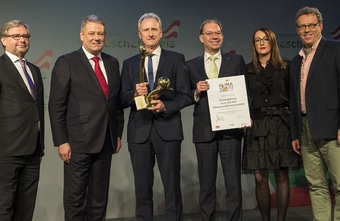 Viele Jahre hat der Laudator der Kategorie Wirtschaft den NÖN-Leopold schon begleitet, nämlich EVN-Vorstandsdirektor Peter Layr. Dieser erinnerte in seiner Würdigung an die Vielfalt der Wirtschaft, „auf die wir in Niederösterreich stolz sein können“ und die sich auch in der Liste der diesjährigen Nominierten (mit sieben Unternehmen auch die längste unter allen Kategorien 2016) widerspiegelte. Und er lobte die Schalungsspezialisten der DOKA Group aus Amstetten, für die Geschäftsführer Jürgen Obiegli diesen „ganz wichtigen Preis“ entgegennahm, als „im Kern ein zutiefst niederösterreichisches Unternehmen, das Unternehmertum, Erfahrung und Modernität“ verkörpere.