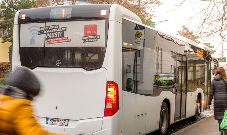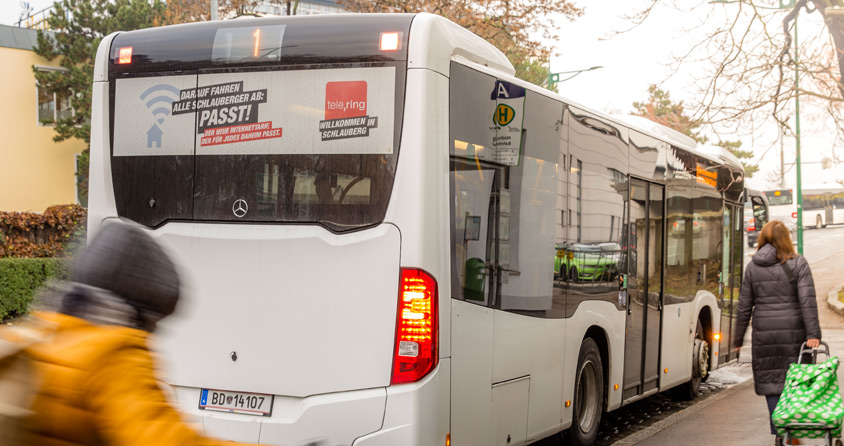 Beworben werden die „PASST!“-Internettarife unter anderem mit dem Branding des Hecks von 246 Postbussen in Wien, Niederösterreich, Burgenland, Steiermark und Kärnten. „Wir wollen mit der Kampagne vorwiegend die rurale Zielgruppe ansprechen und sie auf die neue WLAN Alternative von tele.ring aufmerksam machen“, so Bednarik. „Wir haben uns für Busheckwerbung der ÖBB Werbung entschieden, weil wir damit eine sehr aufmerksamkeitsstarke und besonders auch im ruralen Raum verbreitete Werbeform sehen mit der wir unsere Zielgruppe optimal erreichen können.“ Das Busheckbranding, sei die optimale Ergänzung zu der in regionalen Mutationen ausgesteuerten Kampagne.