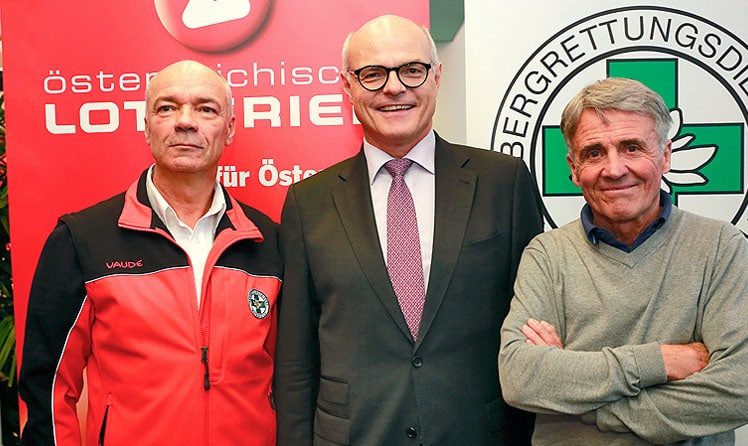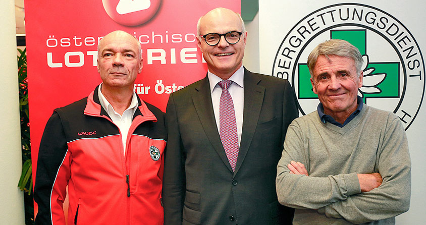 Seit zehn Jahren unterstützen auch die Österreichischen Lotterien den Österreichischen Bergrettungsdienst durch die Finanzierung von Projekten und finanzielle Zuwendungen. Generaldirektor Karl Stoss: „Wir haben erkannt, dass manchmal auch die Helfer selbst Hilfe brauchen. Beispielsweise bei der Ausrüstung. Kaum jemand denkt darüber nach, dass die persönliche Ausrüstung wie Klettergurt, Ski und Helm oder Kleidung zum größten Teil von den Bergrettern selbst finanziert wird. Daher haben wir uns in den vergangenen Jahren bemüht, bei größeren, kostenintensiven Anschaffungen zu helfen. So war mit unserer Unterstützung z.B. die Ausstattung mit GPS- und diversen Rettungsgeräten möglich, der Ankauf von Transportsäcken sowie eines Smartboards und einiges mehr.“