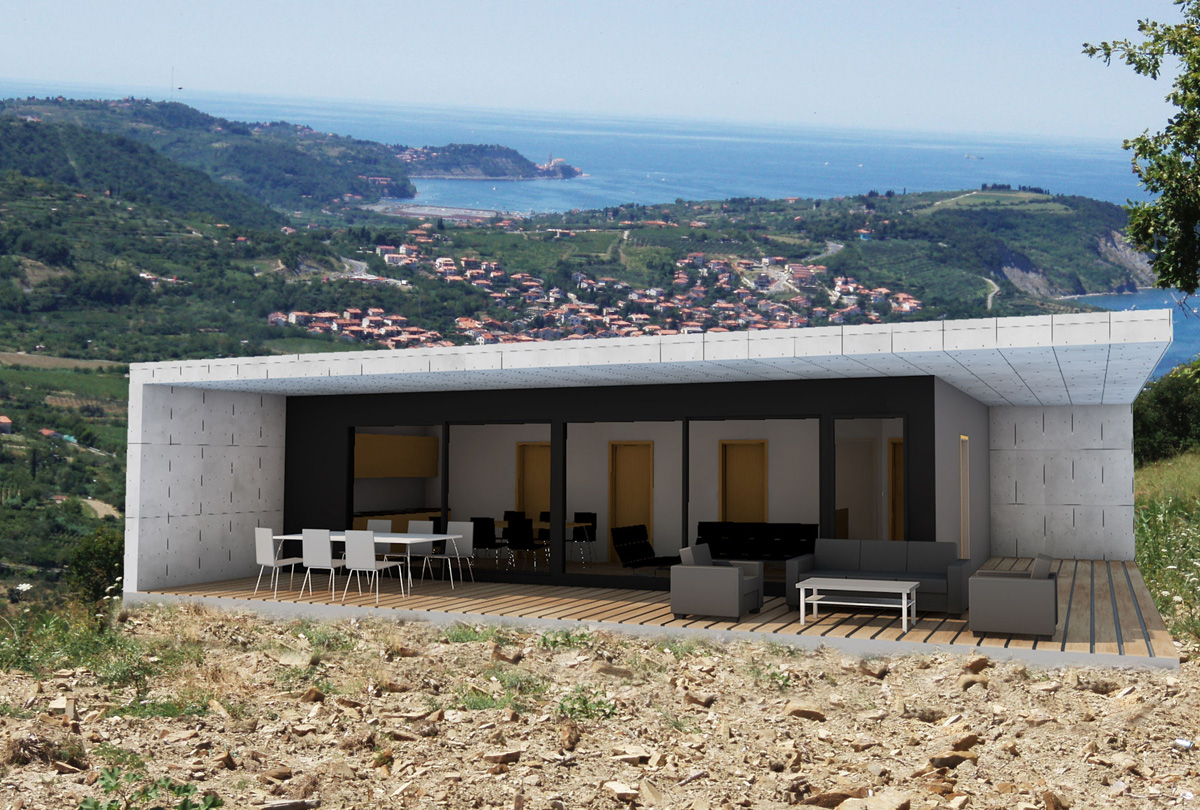 Flexibel und individuell: Das kompakte Architektenhaus in Modulbauweise wird höchsten Ansprüchen gerecht, nicht zuletzt durch die besonders gute Wärmedämmung und die Verwendung ökologischer Baumaterialien. Auf lediglich 58 Quadratmetern finden ein Wohn-/Esszimmer mit Küchenzeile, zwei Schlafzimmer, Bad und Technikraum Platz. Zum Wohlfühlen ist die L-förmige Terrasse, die auch bei Regen genutzt werden kann.