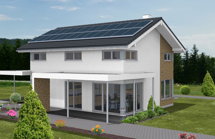 Das neue Musterhaus in Ziegelbauweise bietet rund 150 m^2 Wohnfläche auf zwei Etagen. Von außen fallen insbesondere die überdachte Terrasse sowie ein Carport mit Geräteraum und Eingangsüberdachung ins Auge. Offenes Wohnen und eine großzügige Bäderoase sowie diverse Highlights (etwa Hebeschiebetüren mit niedriger Schwelle, zukunftsweisendes Energiekonzept mit Wärmepumpe und Photovoltaik) überzeugen genauso wie die Möglichkeit einer barrierefreien Planung.