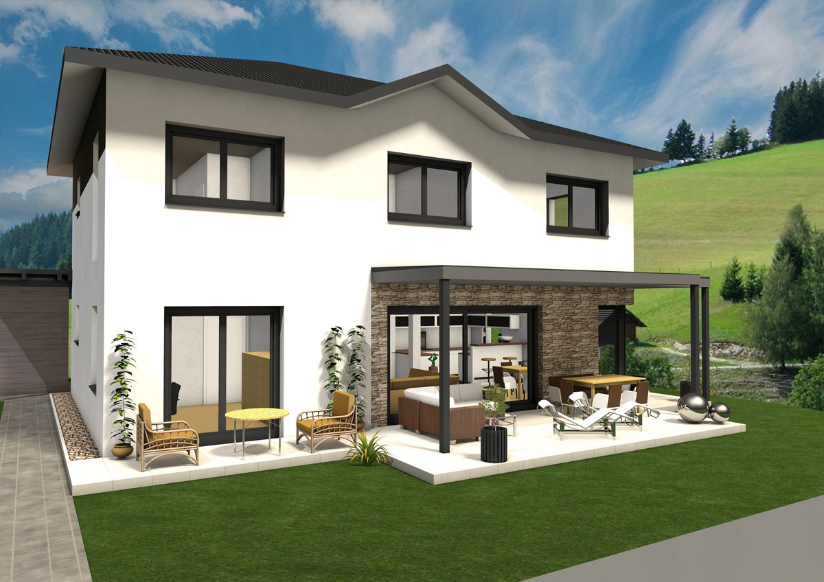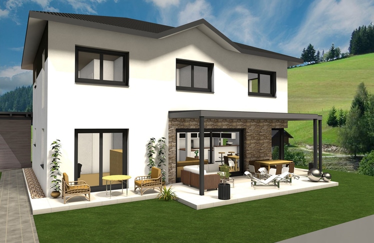 LANOS ist keltisch und bedeutet "voll" oder "vollwertig" - so bieten Häuser dieser Architekturlinie aufgrund ihres mannshohen Kniestocks ein vollwertiges Obergeschoß. Auf 159 m2 Wohnfläche also viel Platz für ein komfortables Familienleben. Auch energietechnisch ist das Haus etwas Besonderes: Durch selbst erzeugte Energie und Stromspeicher kann es weitestgehend autark betrieben werden. Clever: Der Technikraum nimmt im Haus keinen Platz weg, da er in die Garage integriert ist.