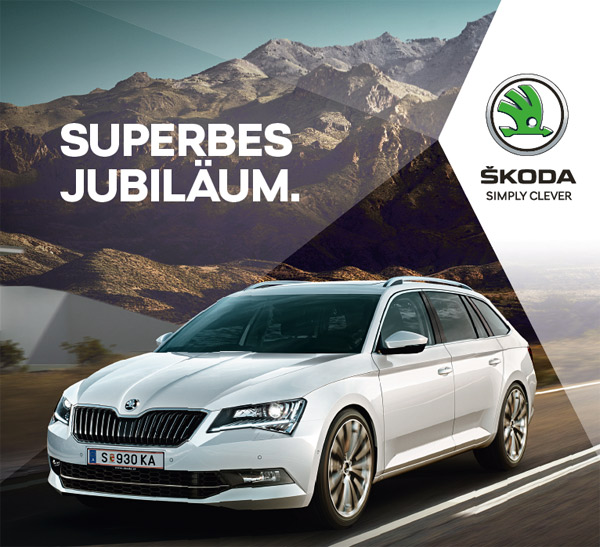 Symbolfoto. Stand 03/2017. Details bei Ihrem ŠKODA Berater. Alle angeg. Preise sind unverb., nicht kart. Richtpreise inkl. NoVA und 20% MwSt. Gültig bei Kauf vom 17.2.-30.4.2017 (ausgenommen Sonderkonditionen). Die 4.770,- Euro setzen sich zusammen aus 1.500,- Euro Jubiläums-Prämie (werden vom Listenpreis des Neuwagen einmalig abgezogen) und 3.270,- Euro Gesamtpreisvorteil bei Kauf eines Superb Combi 150 PS TDI 6-Gang DSG mit Technik- Open Air- und Sicherheit-Paket.