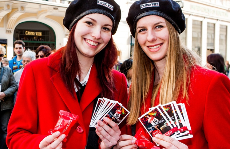 Spiel, Spaß und Action erleben Passanten am Montag, den 20. März 2017 zwischen 12.00 und 18.00 Uhr beim Riesenroulette direkt auf der Kärntner Straße vor dem Casino Wien. Auf einem riesigen Teppich mit den Glückszahlen des Roulettes von 0-36 können sich die TeilnehmerInnen auf das Feld ihrer Lieblingszahl stellen. In einem mobilen Roulettekessel in der Mitte des Teppichs wird von charmanten Croupiers die Kugel gegeben. Zu gewinnen gibt es attraktive Sofortpreise, wie unter anderem die coolen Casino Sonnenbrillen oder Gutscheine für Casino Parties.