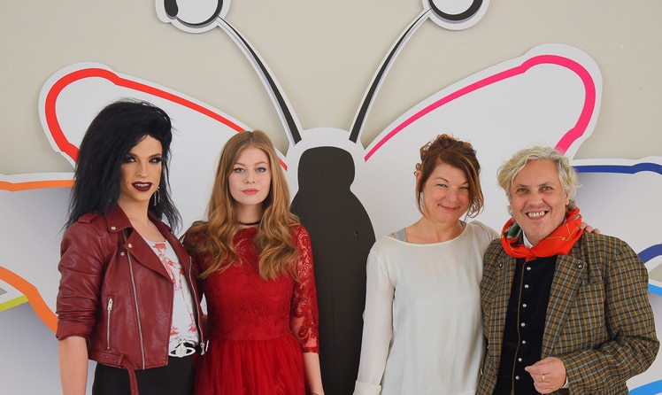 Sängerin und Schauspielerin Zoë Straub, Designerin und Burlesque-Künstlerin Tamara Mascara und Mario Soldo teilten ihre Vorfreude beim Fitting mit DJ Markus Samek von Firefly Club, Ballmutter Monika Haider, Gabarage-Designerin Leni Landsgsell, Gabarage-Leiterin Gabriele Gottwald-Nathaniel, Humana Austria Managerin Elke Zöhrer, zahlreichen Models und vielen mehr.