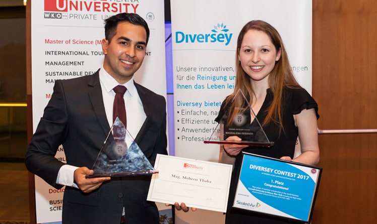 Im Rahmen einer glanzvollen Veranstaltung wurde zum 14. Mal einer der wichtigsten Nachwuchspreise der österreichischen Hotellerie vergeben, der Young Hotelier Award. Der vom General Manager Council (GMC) ins Leben gerufene Wettbewerb dient der Förderung von MitarbeiterInnen und zeigt zudem die Attraktivität der heimischen Luxushotellerie als Arbeitgeber auf. Unter tosendem Applaus wurden Mubeen Thaha (Hotel Hilton Danube Waterfront) und Magdalena Gessner (Vienna Marriott Hotel), die Gewinner der beiden Kategorien „Modul-“ und Diversey Contest“, im Hotel Hilton Danube Waterfront ausgezeichnet. Durch den Abend führte Peter Lorenz, General Manager des Imperial Riding School Renaissance Vienna Hotels.