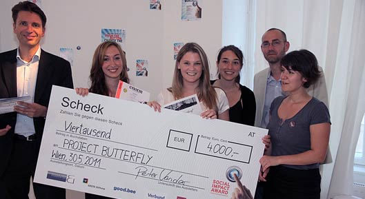 Aus über 84 Projekteinreichungen von rund 200 Studierenden wurden im HUB Vienna, einem Kreativraum für soziale Projekte, die besten und innovativsten Einreichungen mit dem Social Impact Award ausgezeichnet. Vier Preise wurden durch die Jury,bestehend aus Marie Ringler - Ashoka Österreich, Michael Fembeck von der ESSL Privatstiftung, Jennifer Rowe - good.bee und Renate Pretscher - VERBUND AG, vergeben, einer durch ein Online-Voting. Die Gewinnerteams Lüxing Laoshi, NSP New Solar Pump, Project Butterfly, the CONNECTION und whatchado dürfen sich über Stipendien in der Höhe von je 4.000 Euro zur Umsetzung ihrer Projekte freuen.