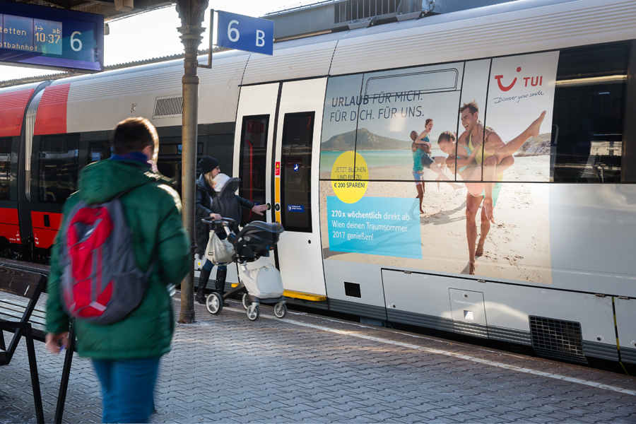 Mit der Verkehrsmittelwerbung gibt es eine einzigartige OOH-Variante. Rollende Plakatflächen – Produkt-Werbung auf Zügen und Bussen – bieten die Möglichkeit, mobile Käuferschichten zu erreichen. Gekoppelt mit regional gezielter Ausspielung dient Verkehrsmittelwerbung als Verstärker für überregionale Kampagnen, der Zielgruppen abseits der Ballungszentren erreicht. Geschäfte mit einem klar definierten Einzugsgebiet profitieren davon, dass öffentliche Verkehrsmittel immer in derselben Region unterwegs sind.