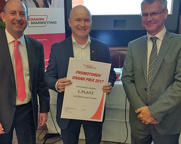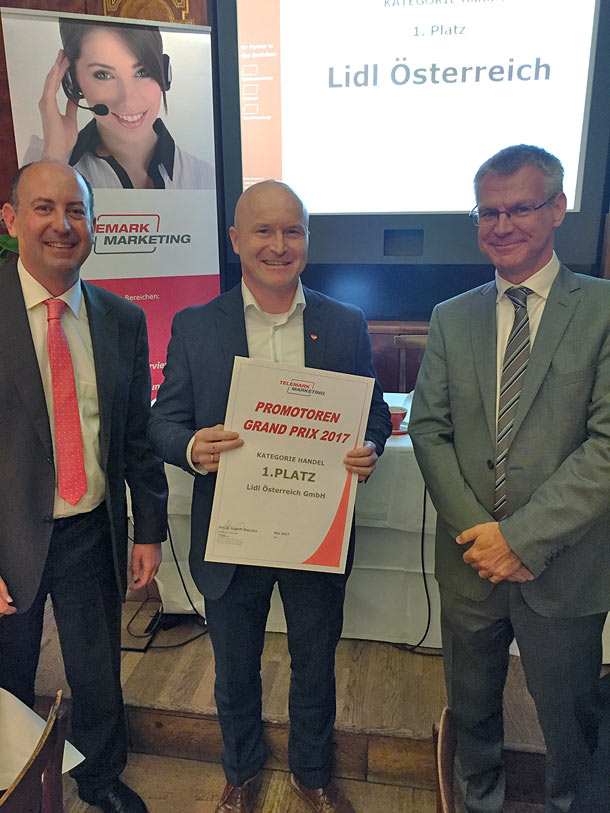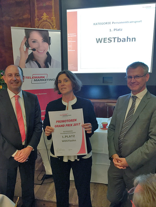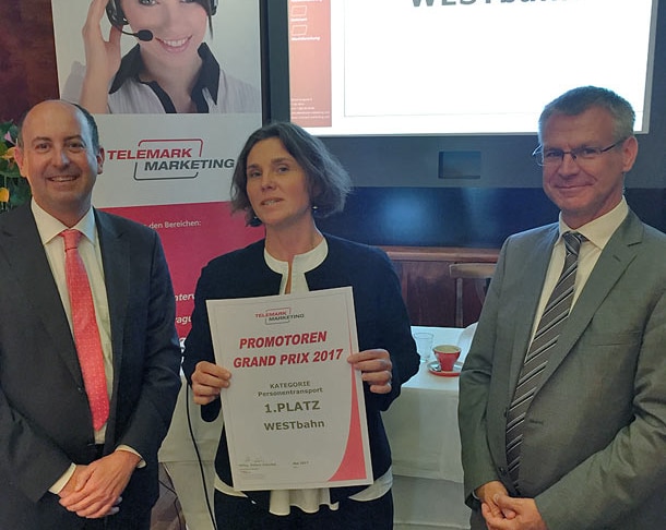 Im Rahmen eines Business Breakfasts im Wiener Café Landtmann wurde der Promotoren Grand Prix 2017 verliehen. Ausgezeichnet wurden vier Unternehmen, die von ihren Kunden im besonderen Maße weiterempfohlen werden. Die Basis für die Preisverleihung ist eine Studie des Marktforschungsinstituts Telemark Marketing. Dafür wurden über 1.000 Österreicherinnen und Österreicher nach Ihren Erfahrungen in unterschiedlichen Branchen befragt und der Net Promoter Score (© Bain & Co) für die größten Branchenteilnehmer gemessen.