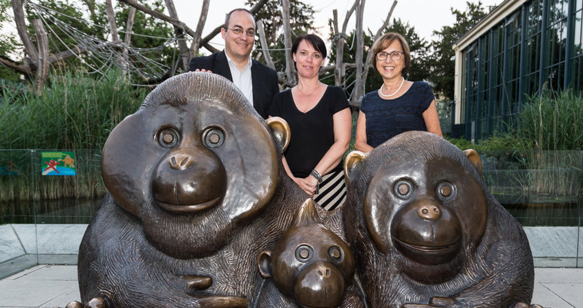 „Infoscreen durfte schon so oft zu einem Tiergarten-Event laden, dass wir uns in der ORANG.erie beinahe wie im eigenen Wohnzimmer fühlen“, bedankte sich Infoscreen-Geschäftsführer Sascha Berndl bei Gastgeberin und Direktorin Dagmar Schratter. Tatsächlich lädt der Fahrgast TV-Sender seit 2006 jährlich zu exklusiven Tiergarten-Führungen. „Es freut mich sehr, dass der Tiergarten mit den Netzgiraffen Fleur und Sophie zwei neue Publikums-Magneten hat. Aber auch Infoscreen wird in Kürze sein Netz mit zwei Publikums-Magneten verstärken“, verkündete Berndl. „Ab ersten September werden wir die U-Bahn-Stationen Hauptbahnhof und Neubaugasse mit Infoscreen ausrüsten und so täglich weitere 50.000 Öffi-Passagiere erreichen.“ Außerdem wird der Fahrgast TV-Sender ab September mit Breaking NewsFormaten noch aktueller. Konkrete Informationen, was genau sich hinter den beiden neuen Infoscreen-Netzen „Yellow“ und „Pink“ verbirgt, blieb Berndl noch schuldig. „Das erklären Ihnen unsere Mitarbeiter gerne bei einem Glas Wein.“
