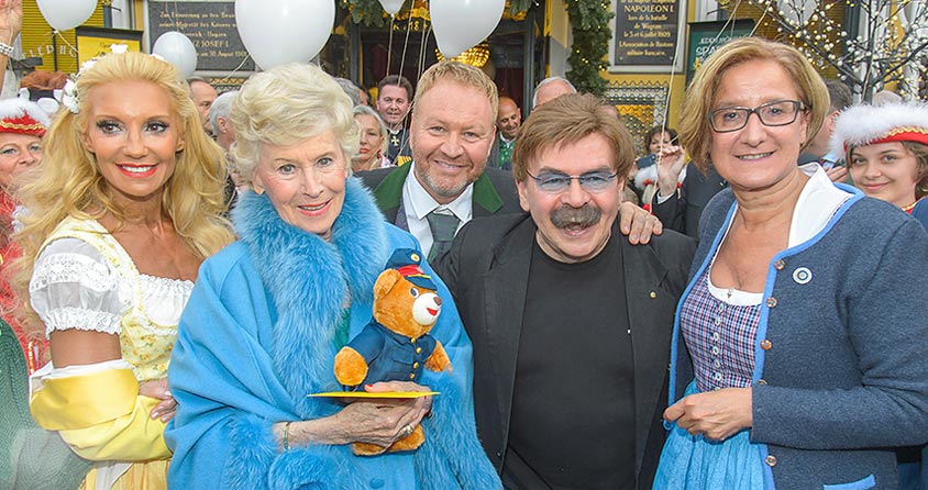 So startete das Fest noch vor dem Marchfelderhof mit den ersten Überraschung – einem Platzkonzert der Polizeimusik Wien unter dem Ehrenschutz von Landespolizeivizepräsident Karl Mahrer, 90 Luftballonen, die die Gäste im Gedenken an Erwin Strahl in den Himmel steigen ließen, sowie der Enthüllung einer Marmortafel für Waltraut Haas. Danach folgten einige unterhaltsame und charmante Gesangseinlagen, wie unter anderem von Patrick Lindner, Andy Lee Lang, Werner Auer, Tamara Trojani, Clemens Unterreiner, Peter Widholz und Waltraut Haas selbst, sowie eine heitere Laudatio von Gerald Pichowetz und eine emotionale Rede von Ex-Nationalratspräsident Werner Fasslabend.